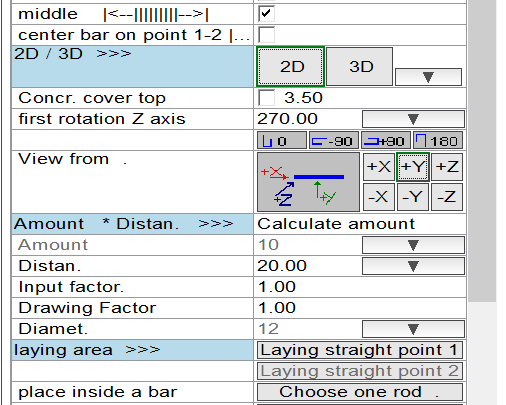 Stellen Sie im Bereich „Betondeckung 2 Punkte / Von Linie“ die Werte für den