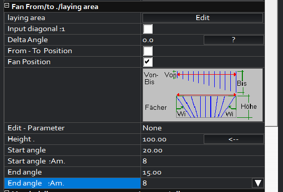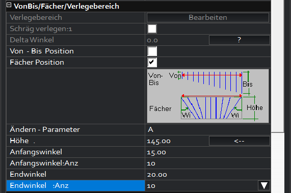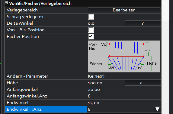– Endwinkel : Anzahl = Eingabe der Stäbe, die auf dieser Seite gefächert werden sollen.