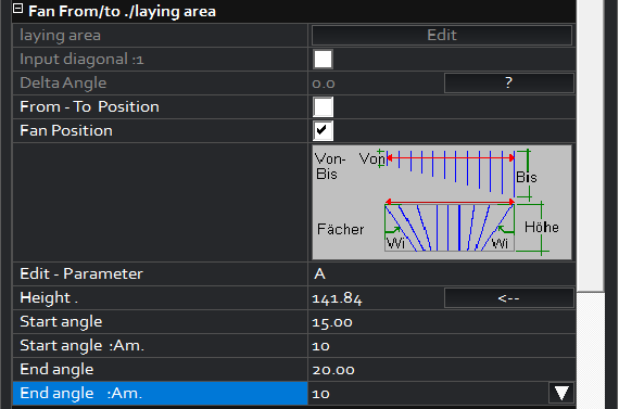 – Startwinkel : Anzahl = Eingabe der Stäbe, die auf dieser Seite gefächert werden sollen.