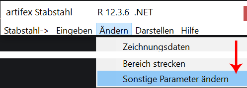 Mit den Änderungsoptionen der Bewehrungsapplikation kann danach die „Positionsanzahl“ oder die „Bauteilanzahl“ auf den Wert 0 gesetzt werden. Die erfolgreiche Änderung ist daran zu erkennen, daß keine Positionsnummer mehr angezeigt wird.