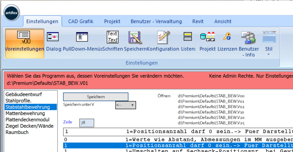 Die Bewehrungspositionen können bei Bedarf jedoch jederzeit in „normale“ Positionen zurückverwandelt werden.