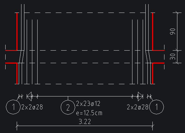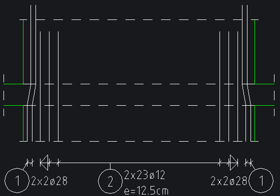 Manchmal ist es erforderlich (zur Verbesserung der Übersichtlichkeit) Bewehrungspositionen (Anschlussbewehrung), die in einer anderen Zeichnung schon erfasst sind als Attrappe darzustellen.