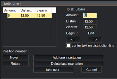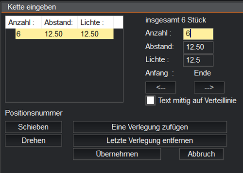 Jeder Bereich der Kette ist eine eigene Stabstahlposition und kann jederzeit nachträglich mit den normalen Änderungsfunktionen verändert werden.