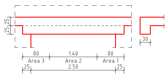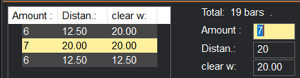 = Abstand vom letzten Stab dieses Bereichs zum ersten Stab des nächsten Bereichs).