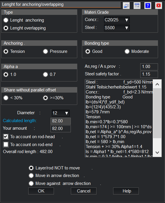 Der Artifex Verankerungslängen-Generator errechnet die Verankerungs-/Übergreifungslänge von