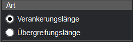 Nach Mausklick auf diesen Schalter öffnet sich die Maske zur Bearbeitung der Verankerungs-/ Übergreifungslänge.