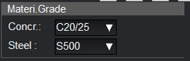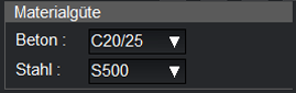 Auswahlmenü’s für Beton- und Stahlgüte.