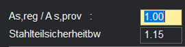 sowie den Stahlsicherheitsbeiwert ein, wenn diese von der Vorgabe abweichen.